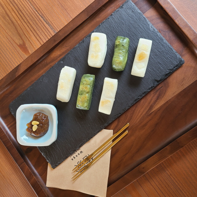 두툼한 절편을 바삭하게 구워 나왔는데,